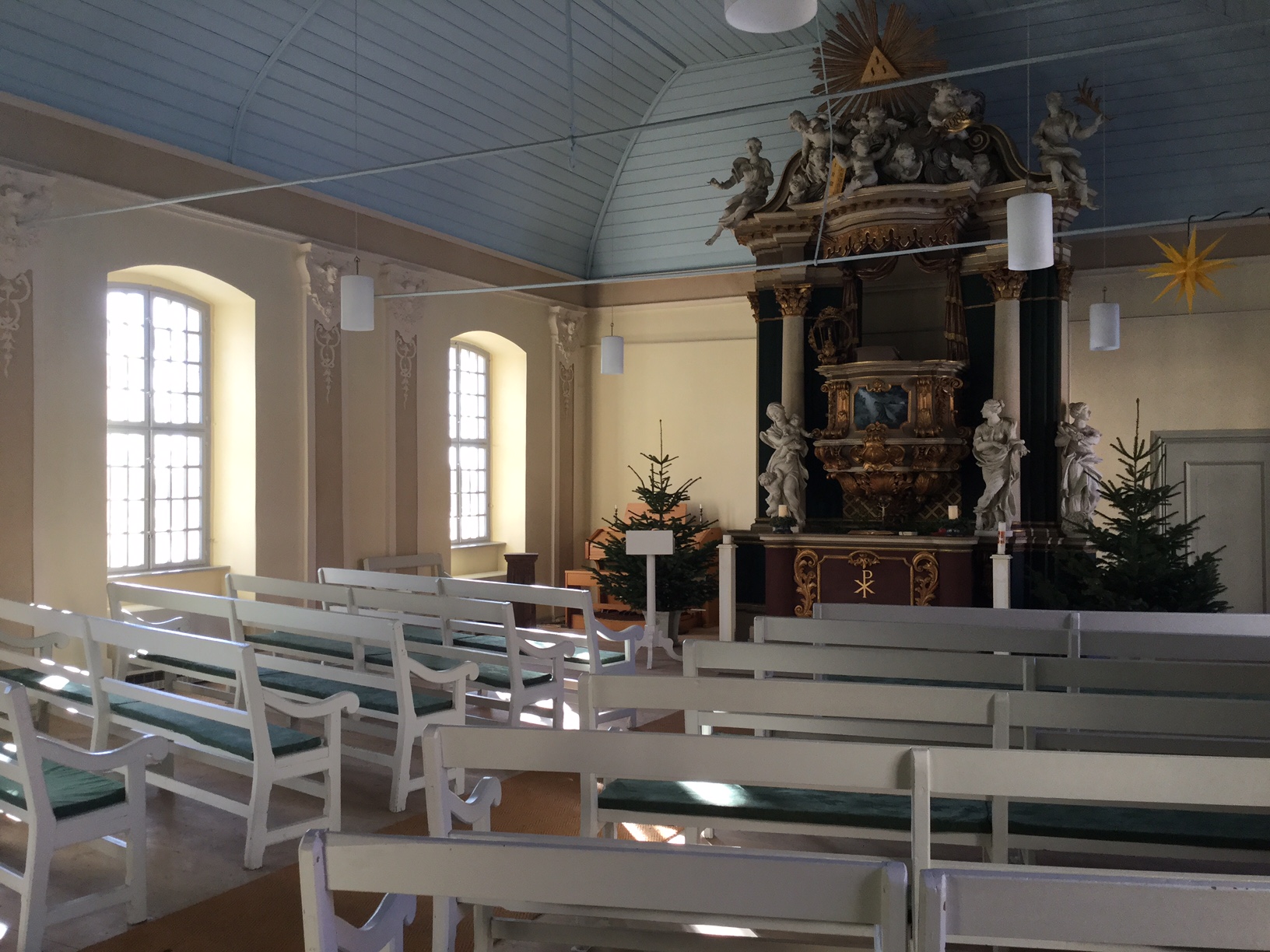 Rokoko im Dorf: Schlosskapelle Hoppenrade mit Kanzellaltar (von 1724), 2016