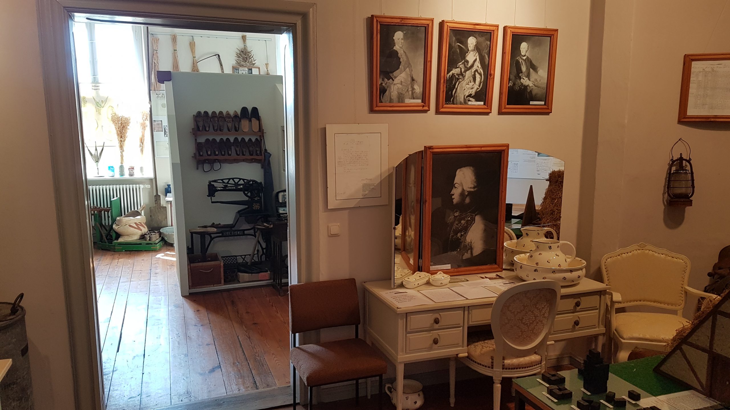 Bis 1945 gab es im Herrenhaus tatsächlich ein „Prinzenzimmer“, das die letzte Gutsbesitzerfamilie Legde als Kinderstube für die fünf Söhne nutzte. Heute werden im ehemaligen Prinzenzimmer dörfliche Gewerke wie Schneider, Schuster und Schlachter ausgestellt. Lediglich eine Ecke erinnert an den unfreiwilligen Gast. Auf einer historischen Friseurtoilette befinden sich ein Porträt, ein kurzer Lebenslauf und ausgewählte Dokumente. Es wäre ein Anfang. Der Anspruch des Vereins klingt zwar wie eine Phrase, lässt aber hoffen: „Wir haben schon einiges erreicht und haben noch viel vor.“