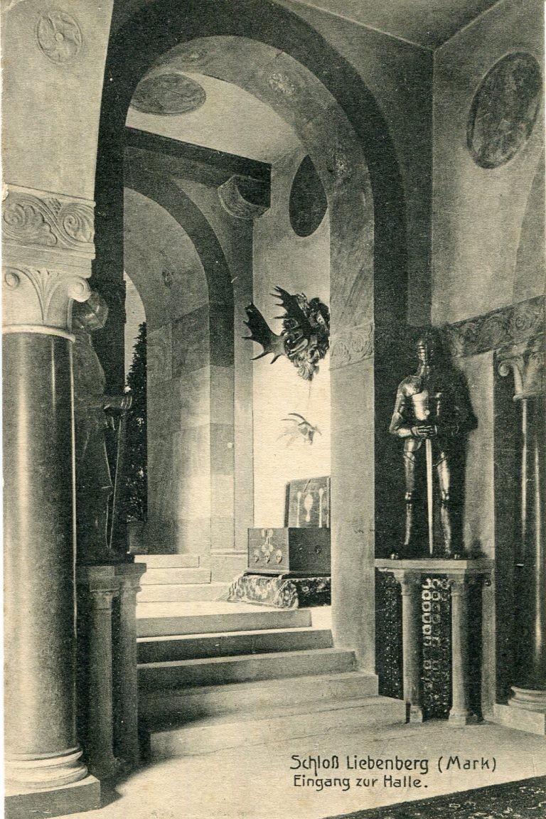 Sucht in unserer Provinz ihresgleichen: Eingang zur Nordischen Halle in Schloss Liebenberg, Postkarte, um 1900; Quelle: Archiv Rauh